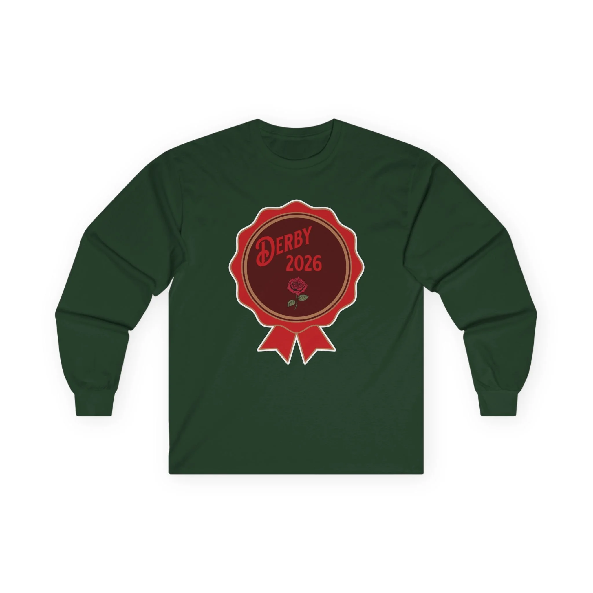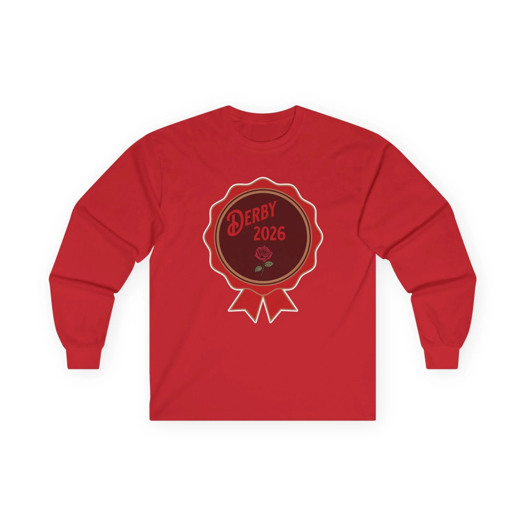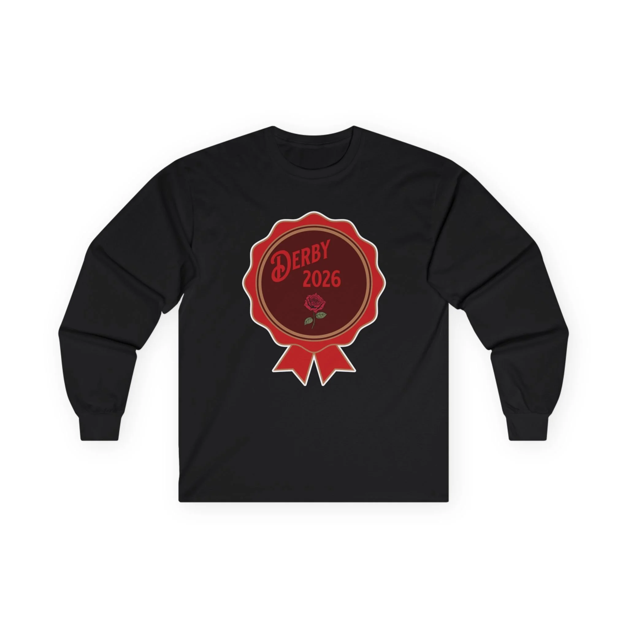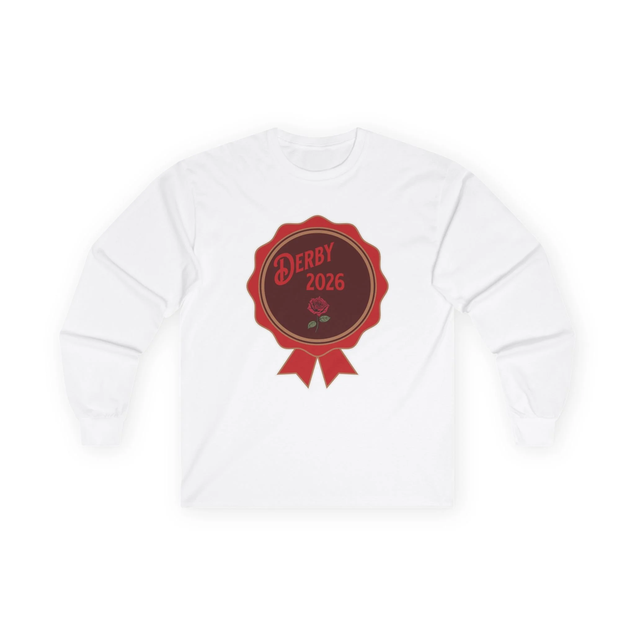 Derby 2026 Ribbon Badge Long Sleeve Tee | Horse Racing logo, Event shirt thoroughbred
