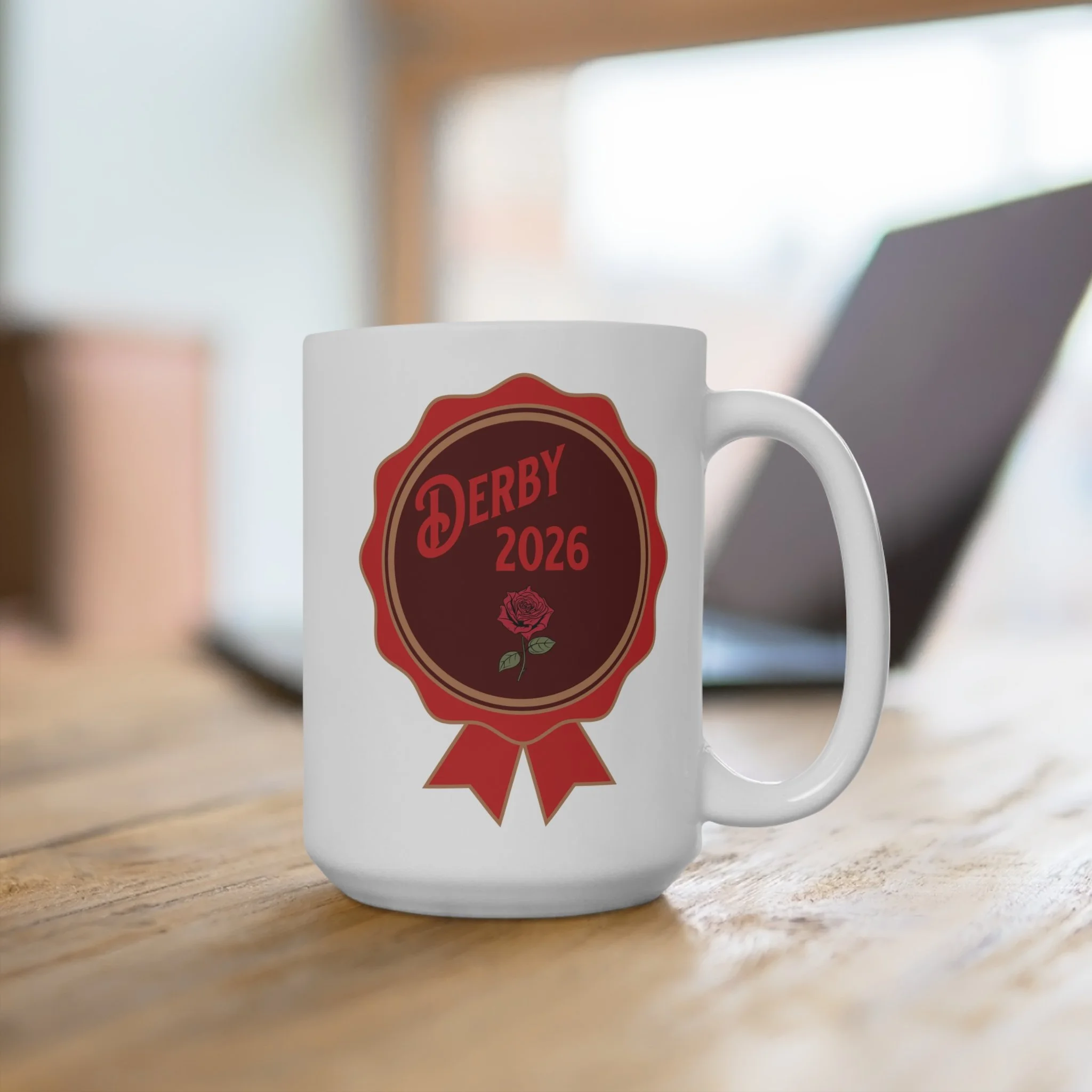 Derby 2026 Ribbon Badge Mug | Rose Emblem Coffee Cup
