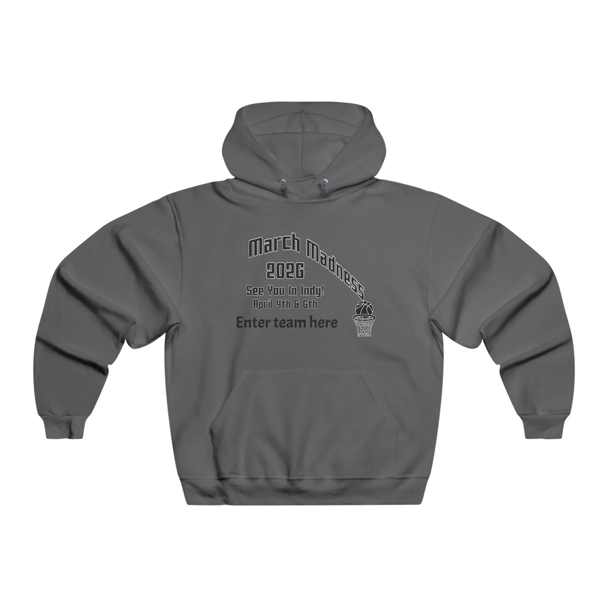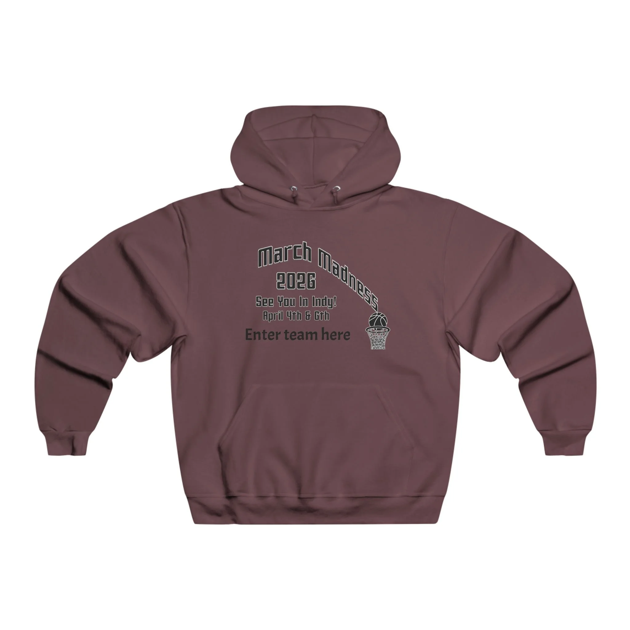 Lightweight but warm, this hooded sweatshirt carries the lived-in feel of dorm-room rivalries and late-night bracket talks. The soft cotton blend drapes easily over a tee, while the roomy hood and kangaroo pocket add an easygoing, practical edge. On the chest a vintage-inspired “March Madness 2026” layout — with space for your team name — feels like a badge from that one unforgettable tournament weekend, faded from wear and full of stories. Pull it on after a long day of practices, wear it to watch parties, or keep it on during slow Sunday mornings when you’re still thinking through the final buzzer-beaters.