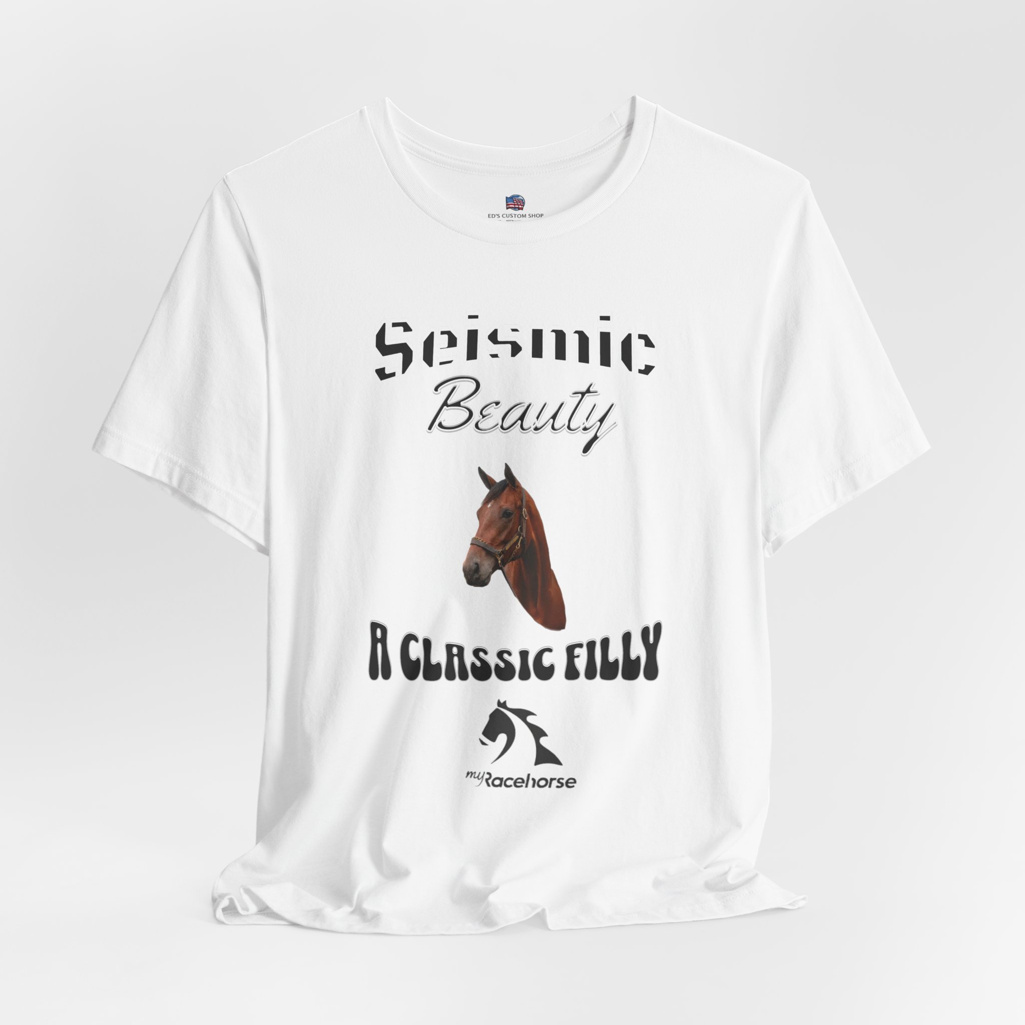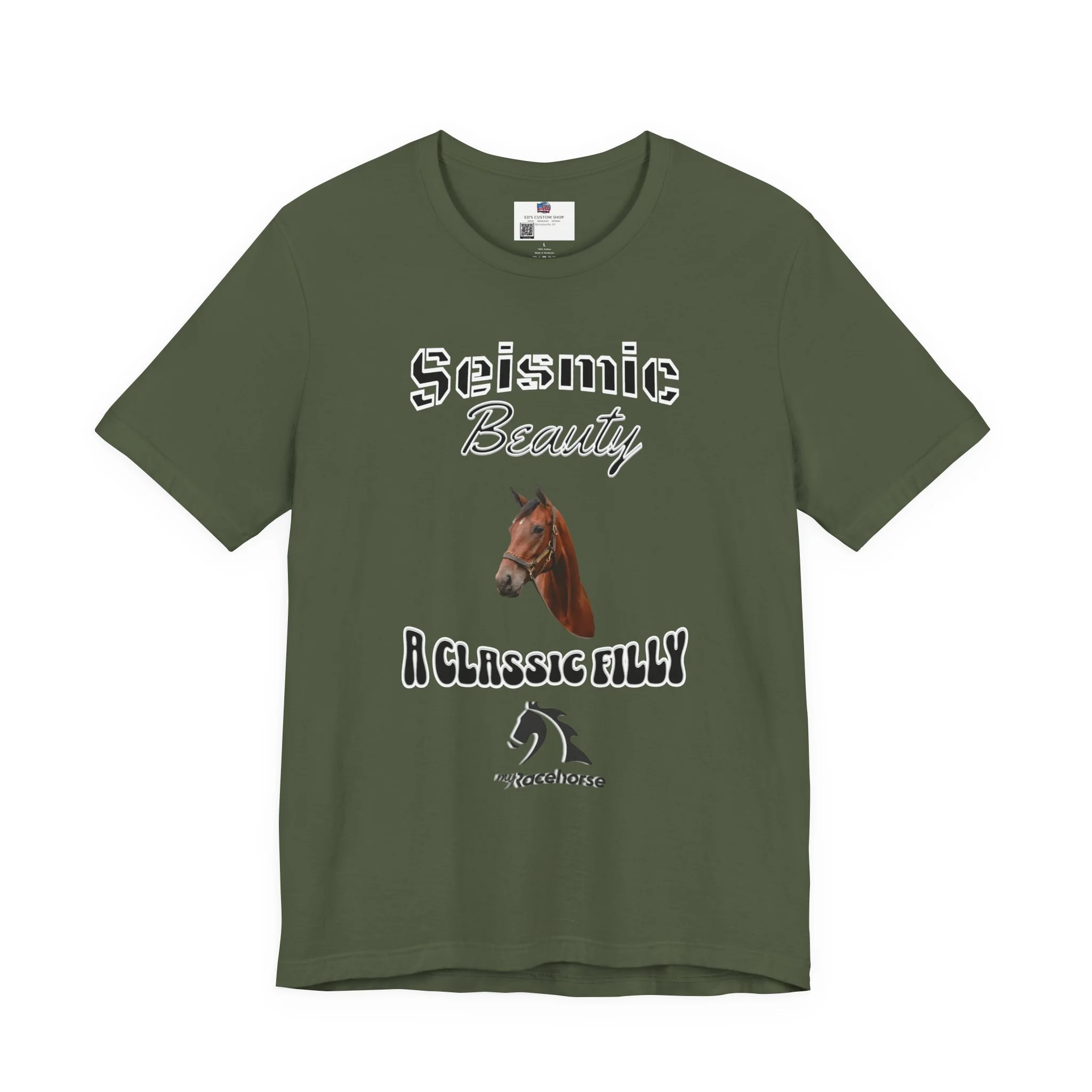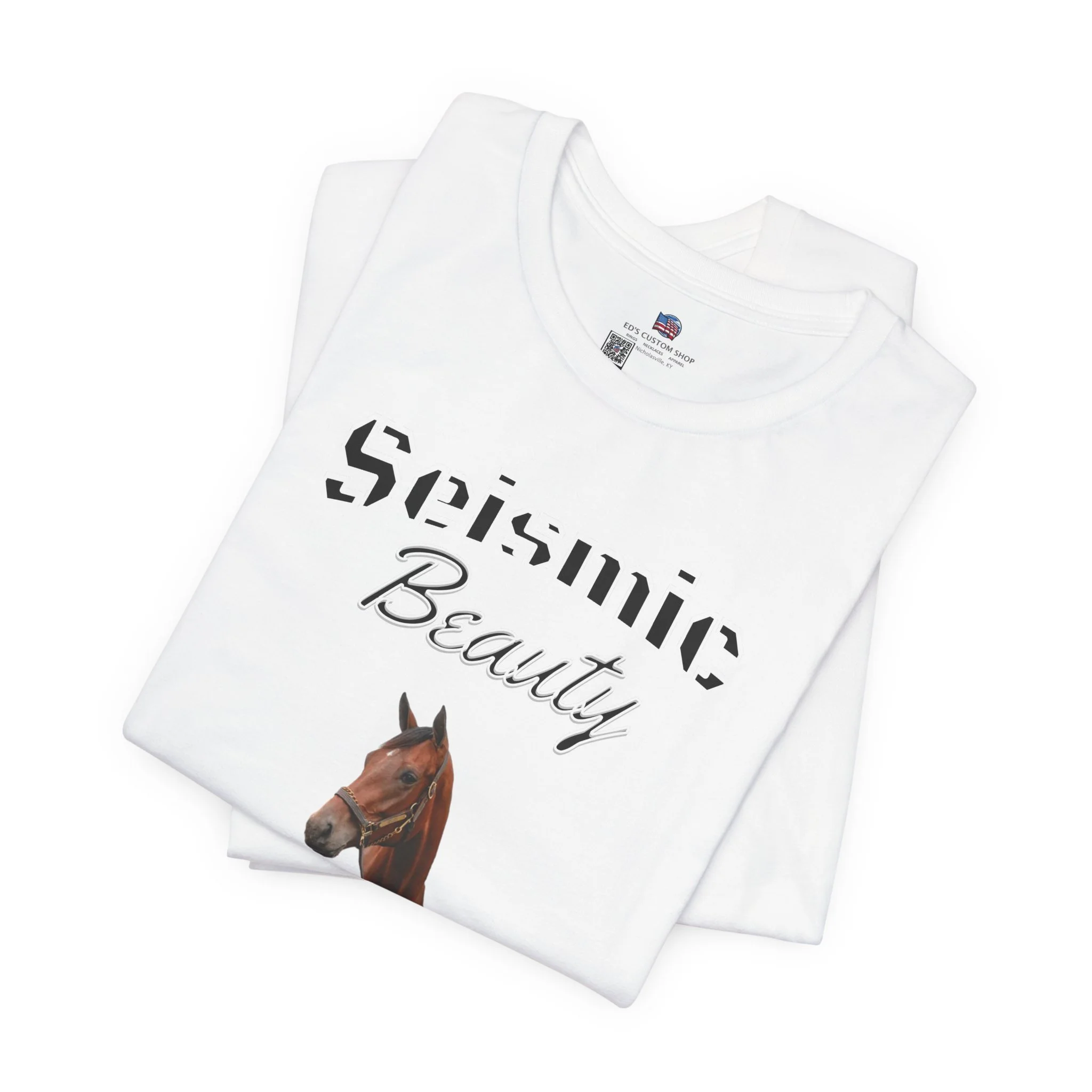 Celebrate the beauty of horse racing with this Seismic Beauty Filly Horse Breeders' Cup Winner Del Mar Winner. This tee exudes a classic yet sporty vibe, perfect for horse lovers and fans of the Breeders Cup. It fits seamlessly into a casual or semi-formal wardrobe, ideal for everyday wear or special events.