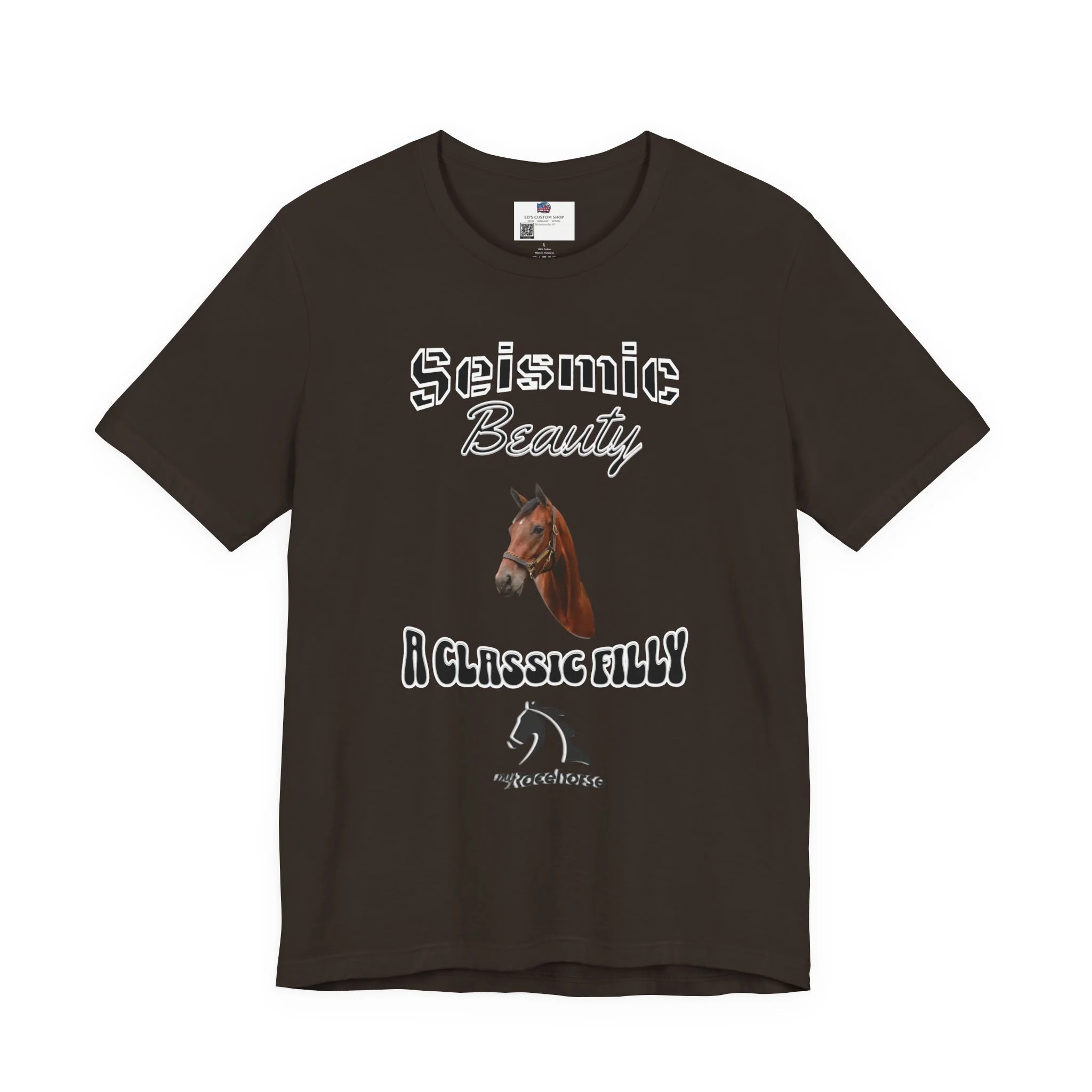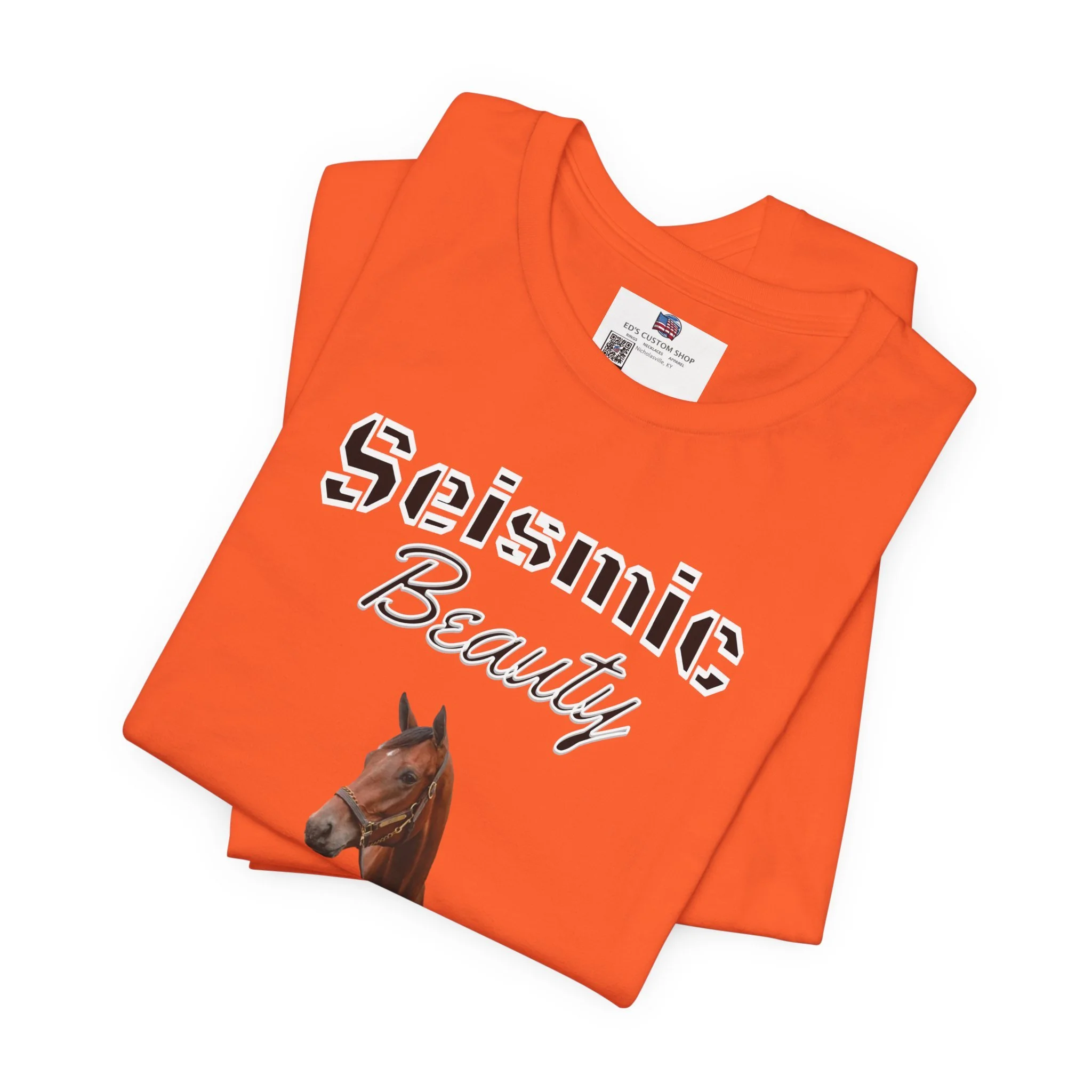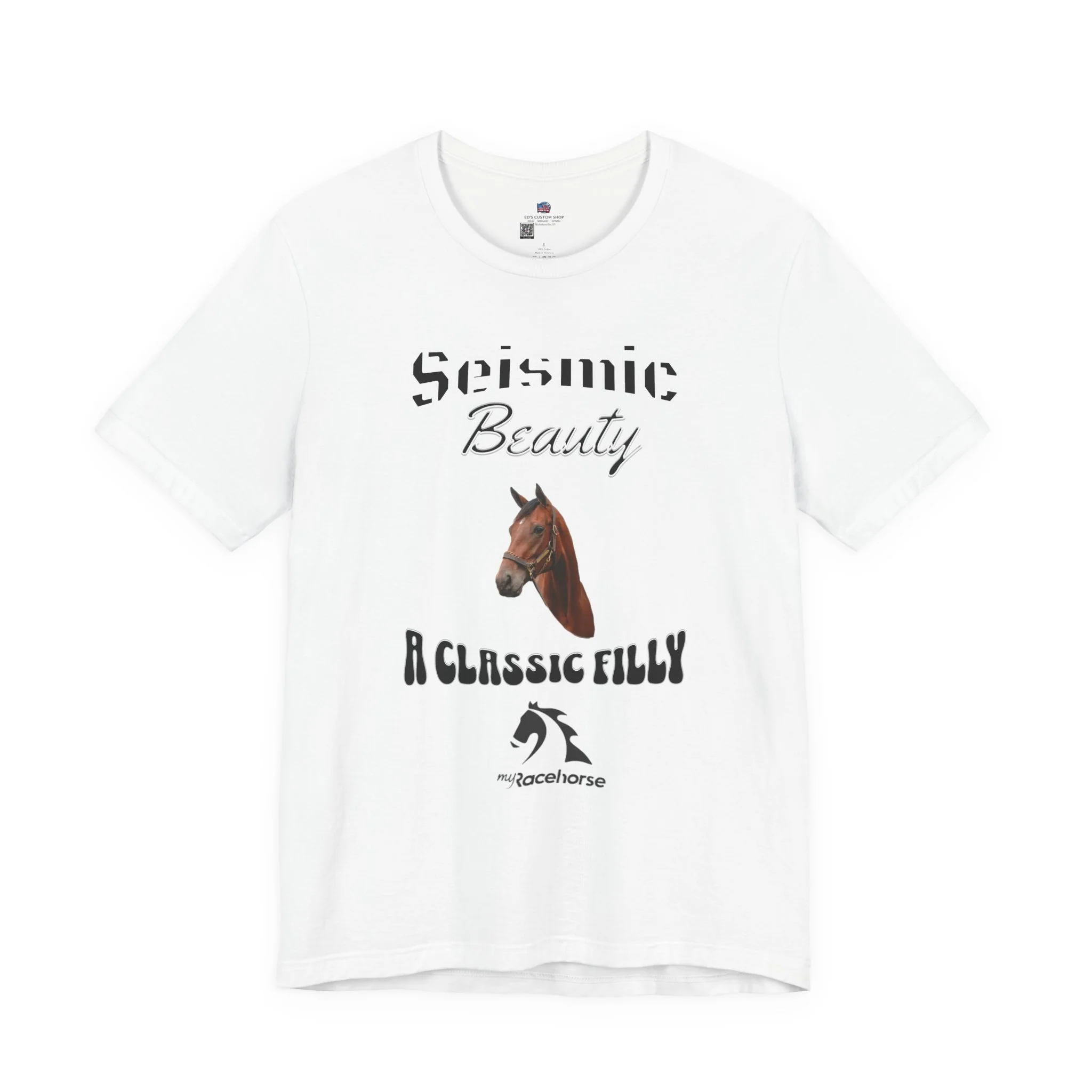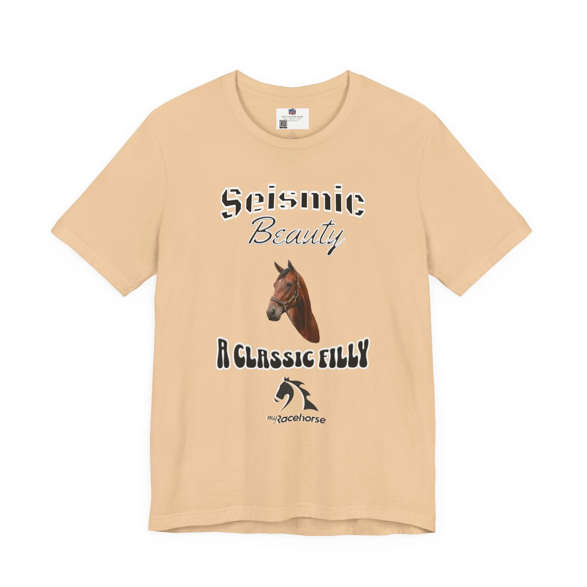 Celebrate the beauty of horse racing with this Seismic Beauty Filly Horse Breeders' Cup Winner Del Mar Winner. This tee exudes a classic yet sporty vibe, perfect for horse lovers and fans of the Breeders Cup. It fits seamlessly into a casual or semi-formal wardrobe, ideal for everyday wear or special events.