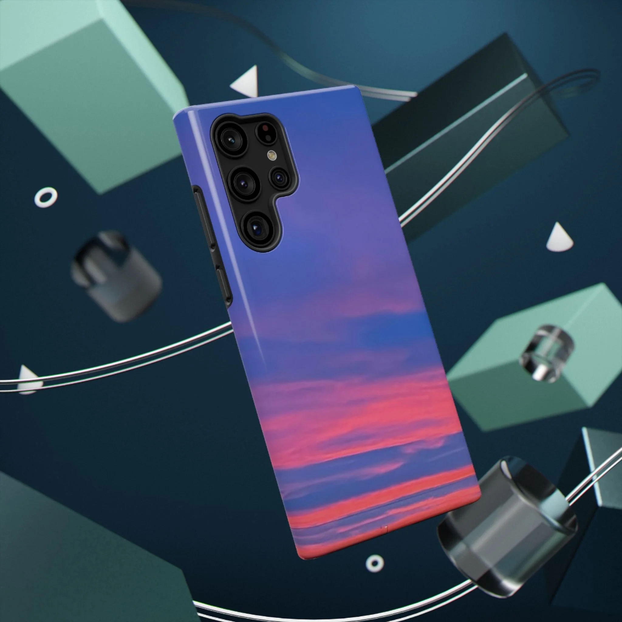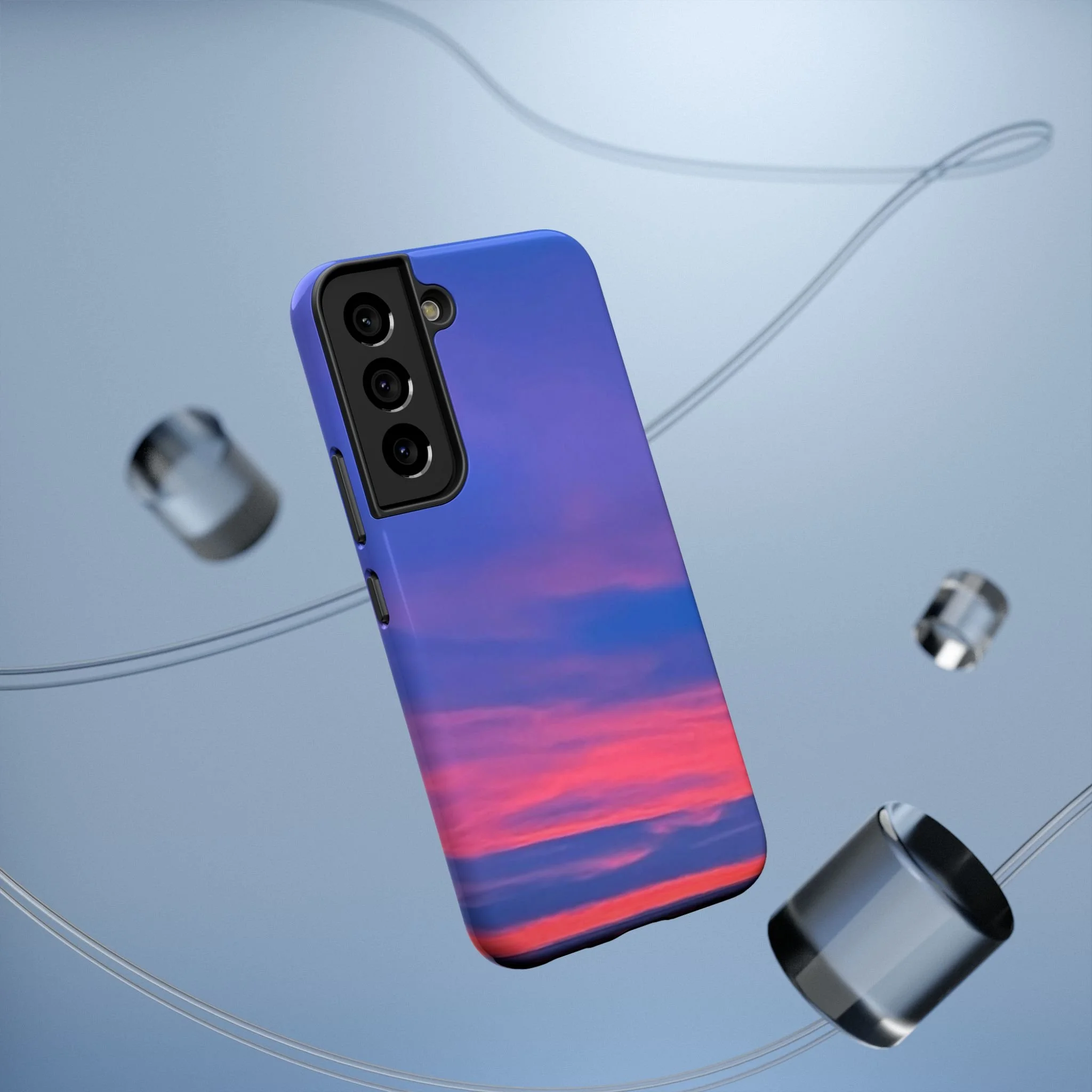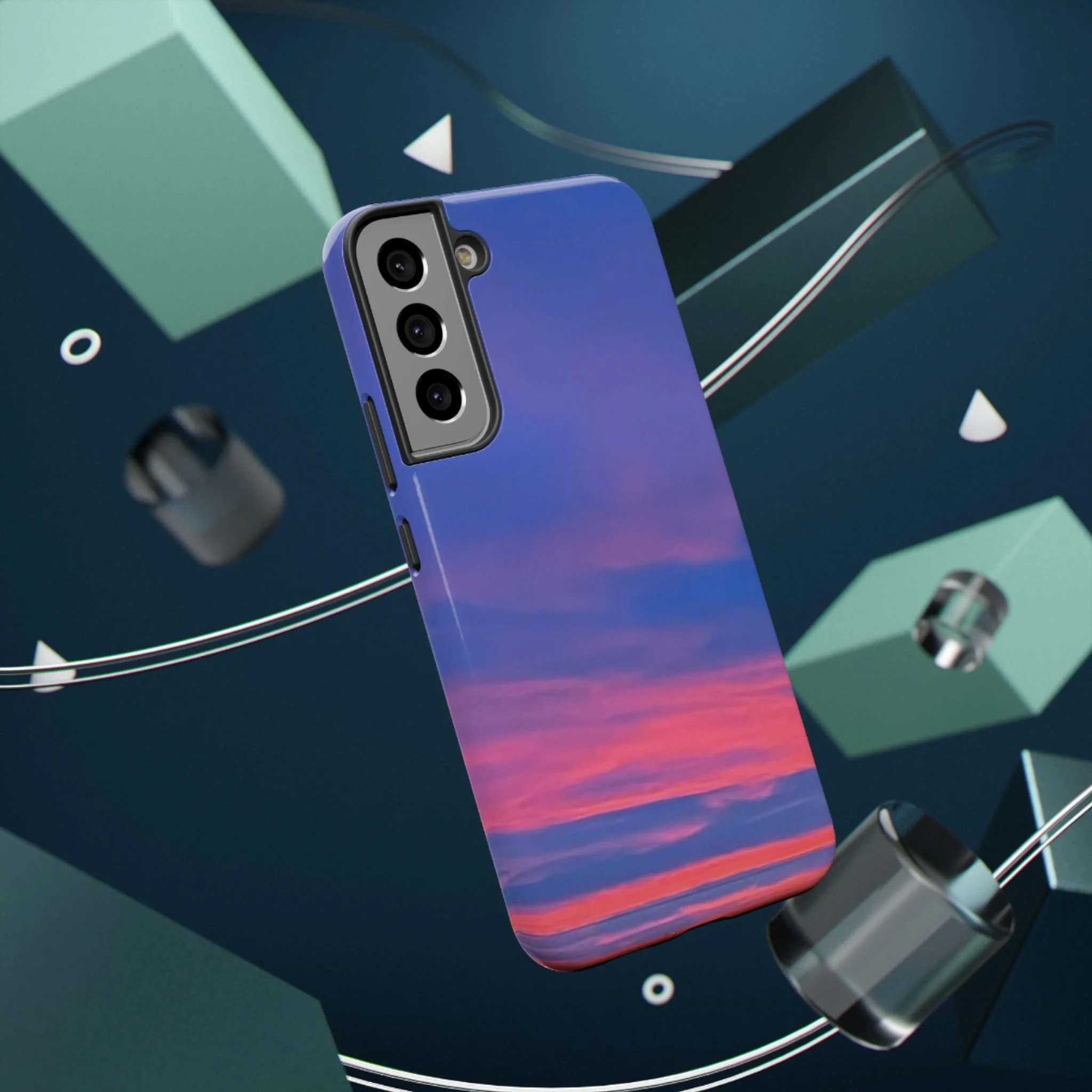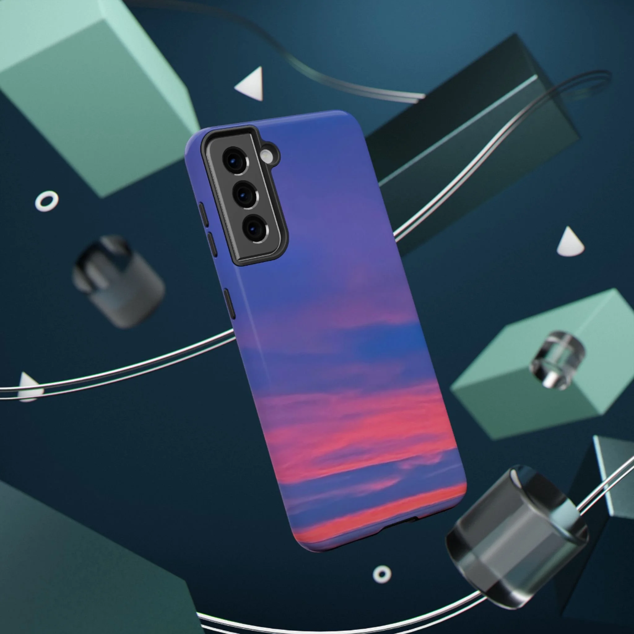 Carry a slice of evening sky with you. This impact-resistant phone case wraps a soft gradient sunset—deep indigo melting into coral-pink—around a dual-layer shell that absorbs daily knocks. It feels smooth in either glossy or matte, and the full-wrap print keeps the image seamless from edge to edge. The slim outer polycarbonate and removable black TPU liner work together to protect edges and corners while still allowing wireless charging and easy button access. For those who pause to watch dusk unfold, this case turns a small everyday item into a calm, portable moment.
