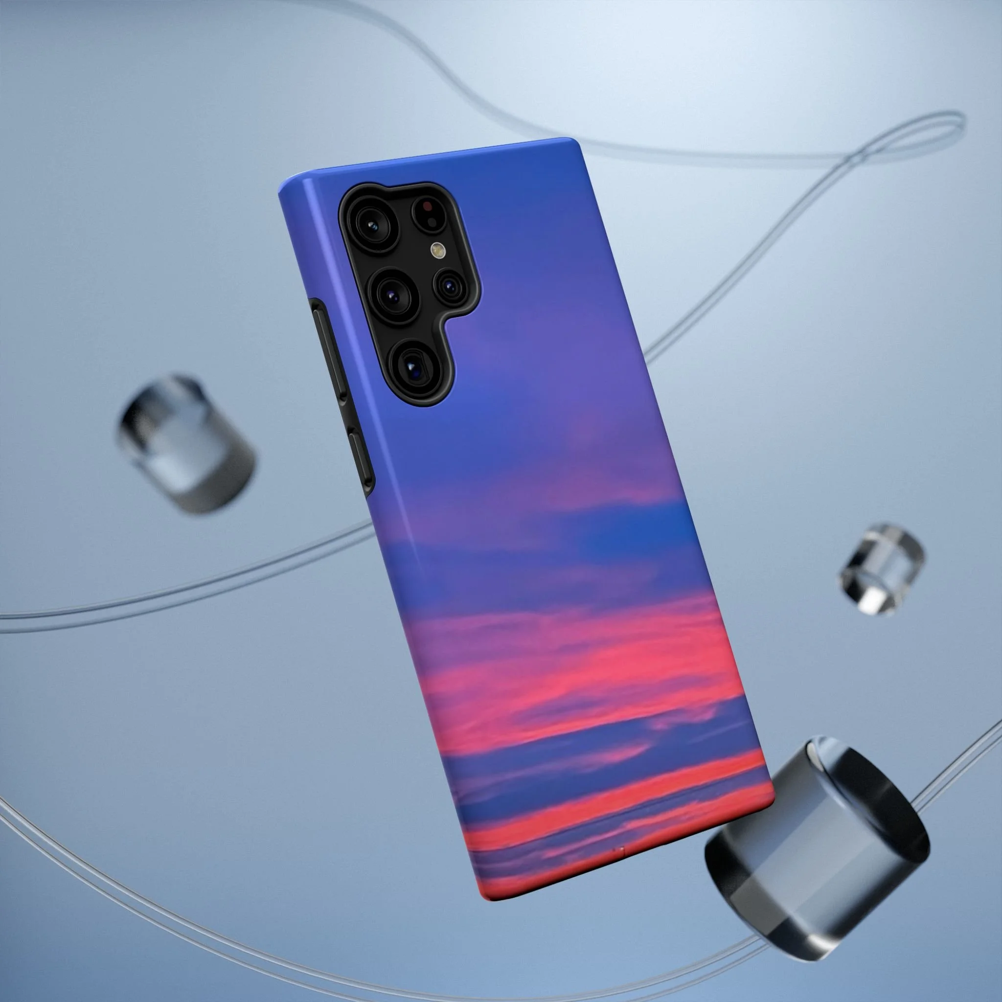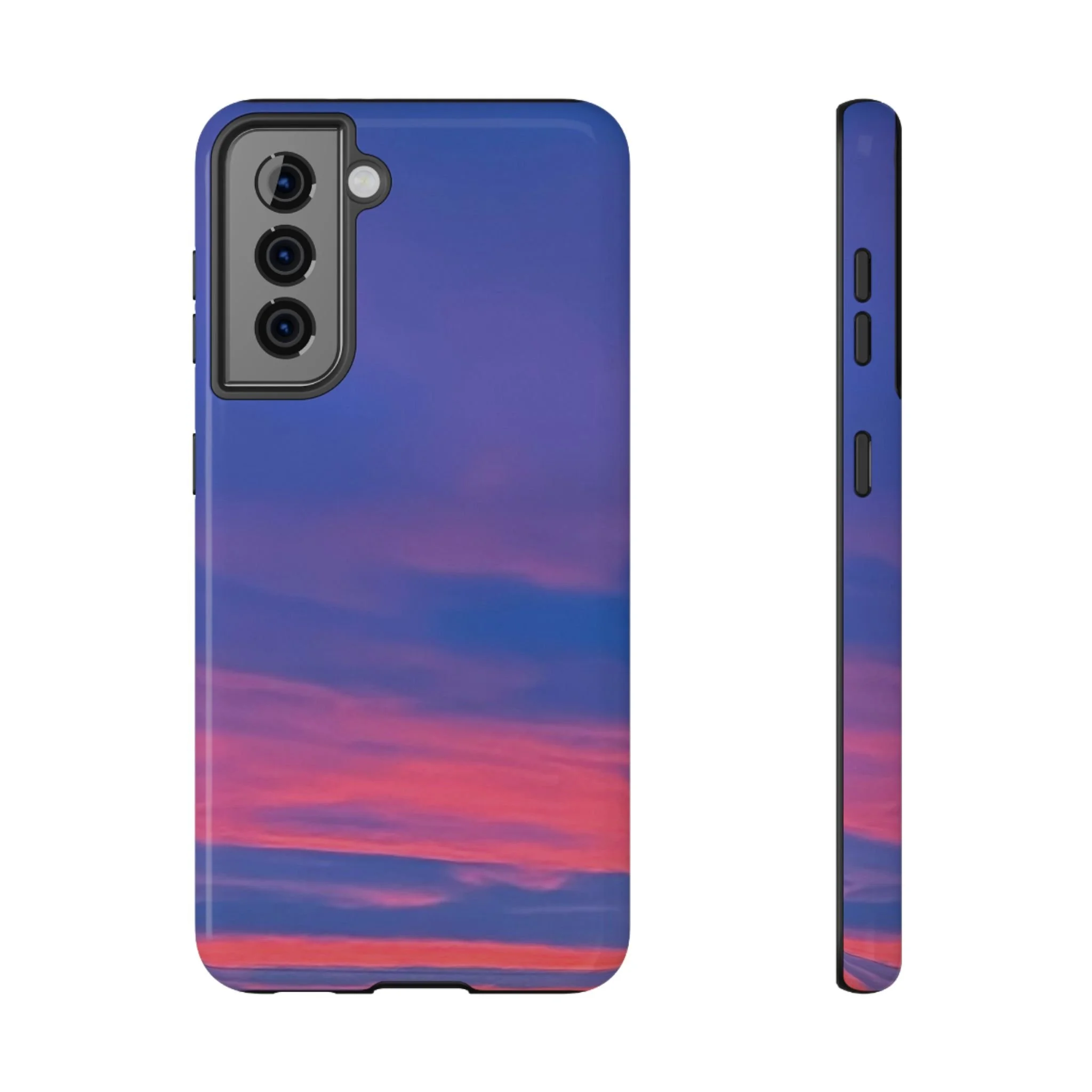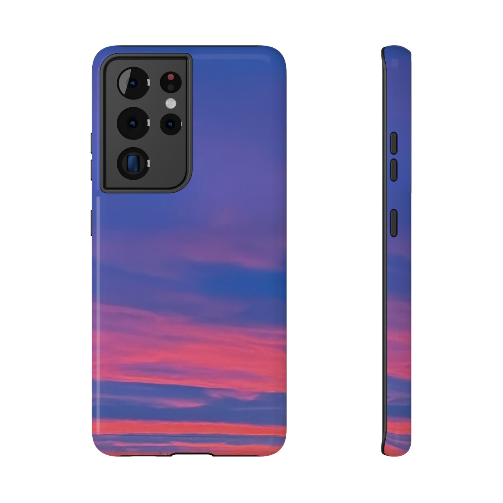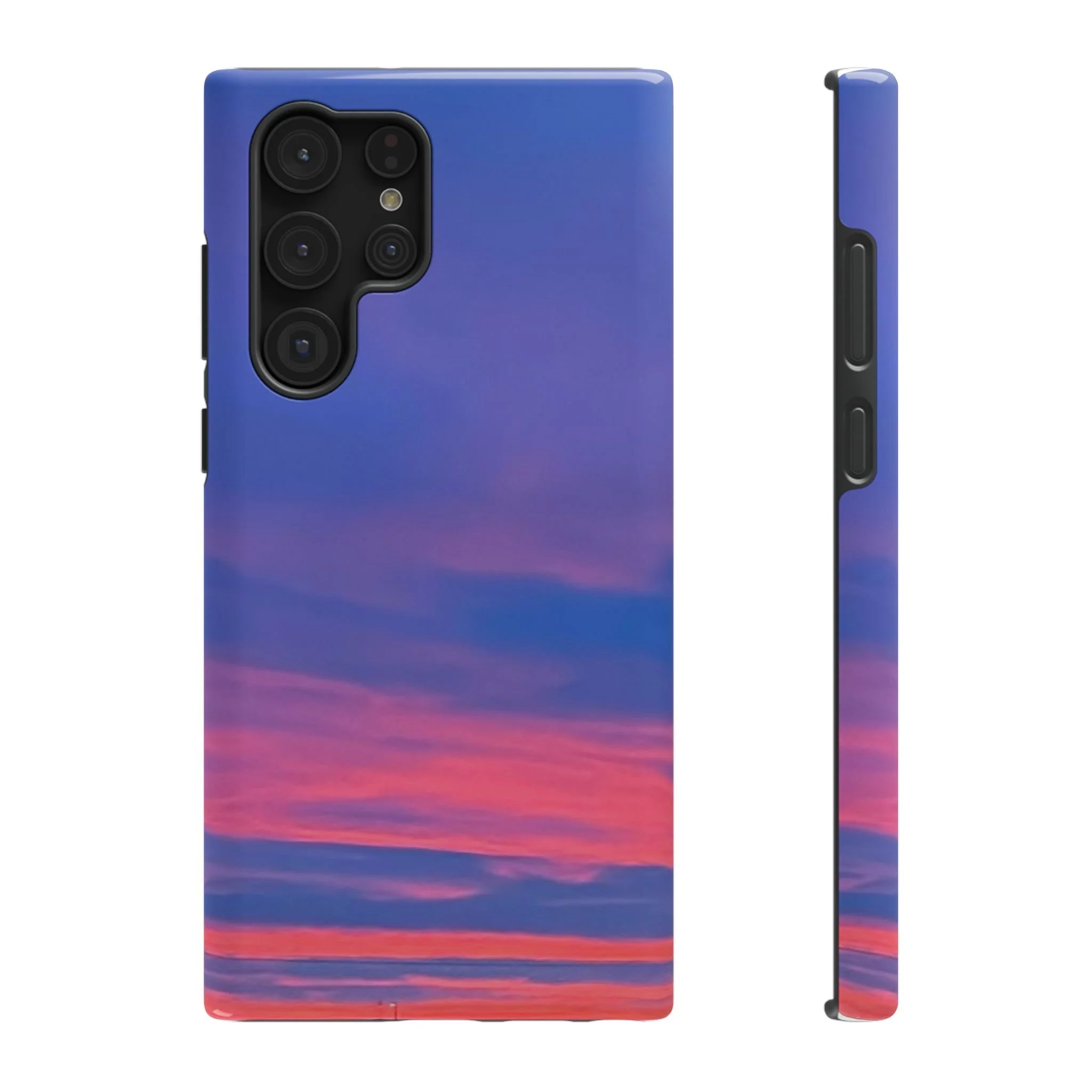 Carry a slice of evening sky with you. This impact-resistant phone case wraps a soft gradient sunset—deep indigo melting into coral-pink—around a dual-layer shell that absorbs daily knocks. It feels smooth in either glossy or matte, and the full-wrap print keeps the image seamless from edge to edge. The slim outer polycarbonate and removable black TPU liner work together to protect edges and corners while still allowing wireless charging and easy button access. For those who pause to watch dusk unfold, this case turns a small everyday item into a calm, portable moment.
